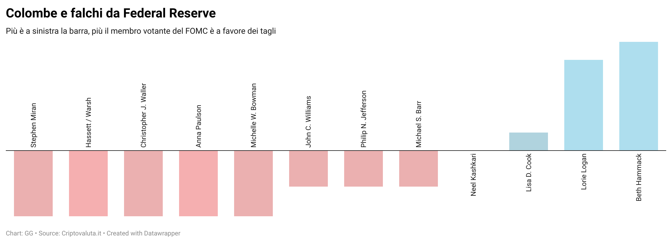 Hammack, che sarà tra i votanti da gennaio, ha già affermato pubblicamente di essere contraria ai tagli. È il suo biglietto da visita, in realtà non necessario, perché tutti conoscono Hammack come falco estremo, come se ne vedono soltanto nelle divisioni locali di Fed (i membri del board sono storicamente più dovish).